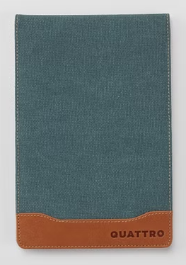 These canvas journal covers can accommodate Quattro journals for added protection and style. They feature a tailored sleeve with leather trim to securely hold a Quattro journal, an elastic pen holder to accommodate most writing instruments and a convenient pocket in the overlap.