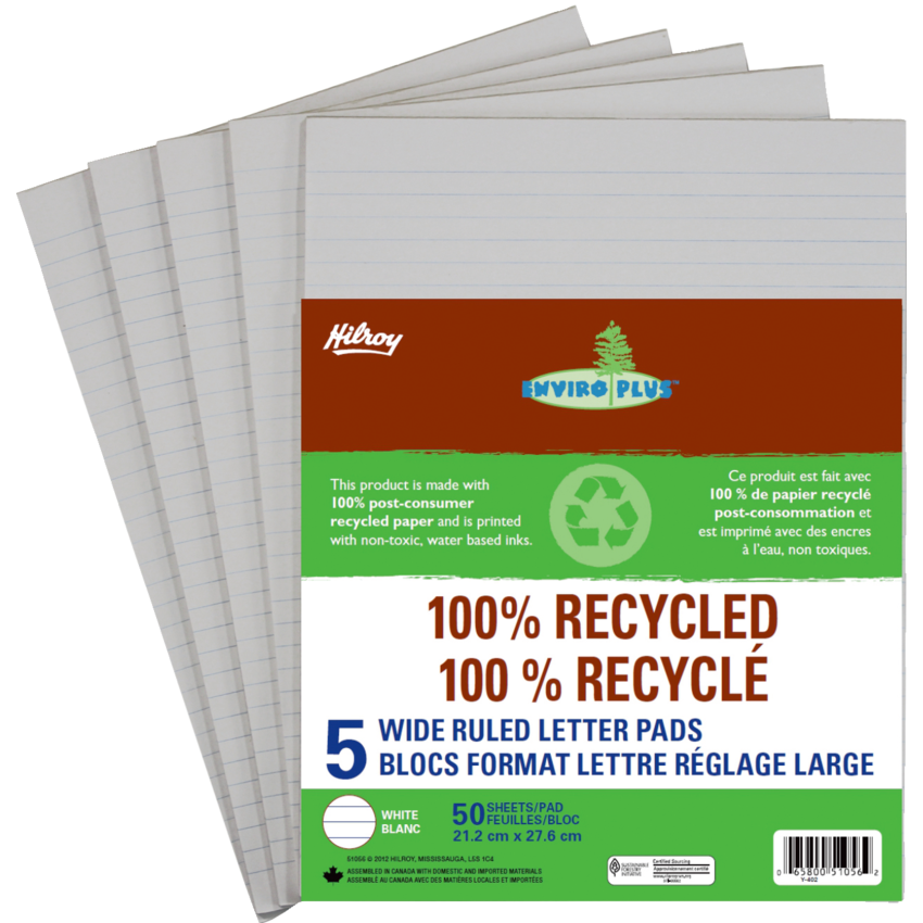 Product Name: 100% Recycled Wide Ruled Letter Pad