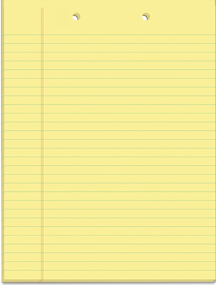 2-Hole Punched Hilroy Writing Pads Wide Rule 90 sheets per pad 8-3/8" x 14" Canary Single