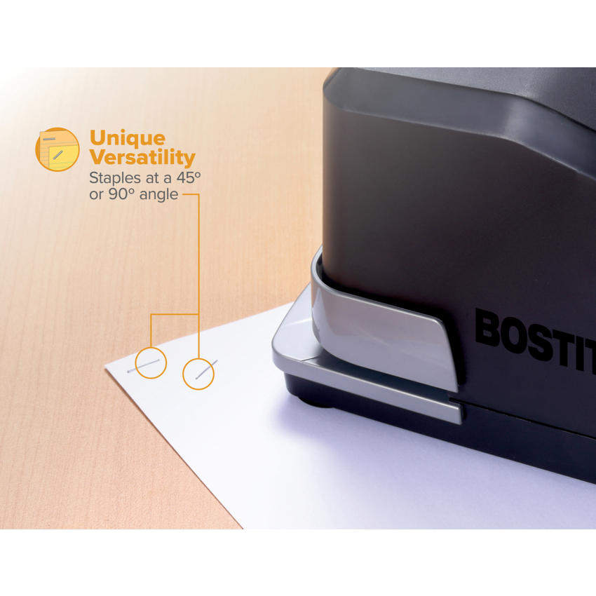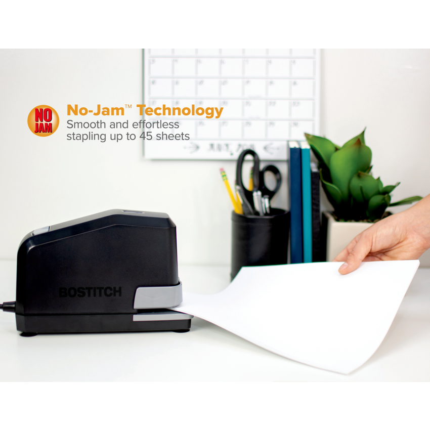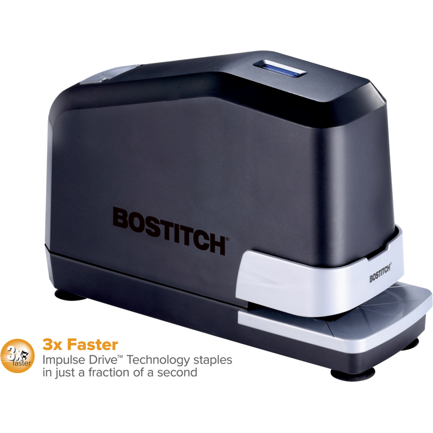 Fast impulse drive delivers up to 3X faster stapling. Staple indicator light lets you know when you need to refill the staples Features No Jam technology, fast load reload system and a 6-foot power cord. Includes 5,000 staples. Full strip. 45 sheets. Black.
