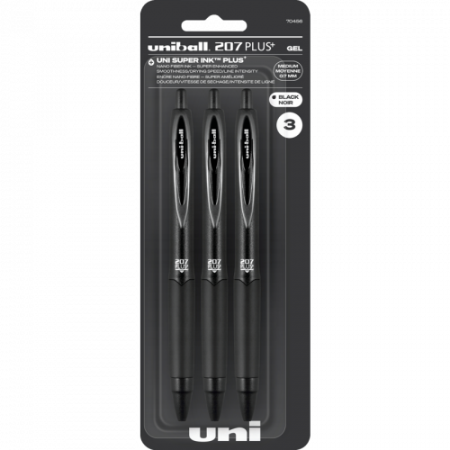 Uni Super ink Plus with nano fibre ink is the world's first consumer application of a plant fibre, molecule-based super strong ink. This environmentally friendly ink, is derived from trees, rice, straw, and orange peels Textured grip. 0.7 mm. Black. 3/pkg.