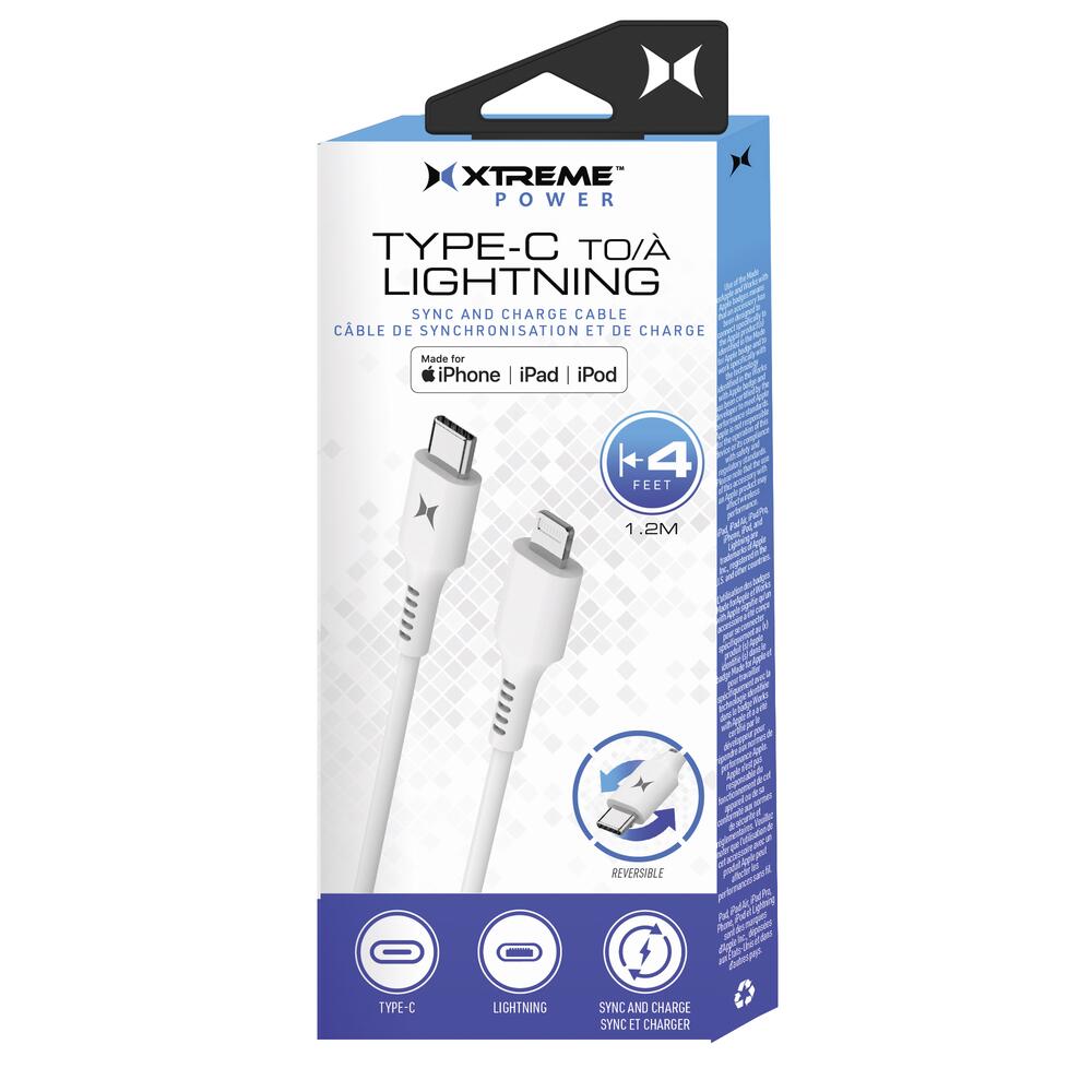 The Xtreme 4ft Type-C To Lightning Cable allows you to recharge your devices when they run out of power. Useable with the latest Apple iPhone and iPad models, our cable provides a fast and reliable charge when needed. Whether it?s the iPhone 13, Mini, Pro, Pro Max or with older versions going back to the iPhone 6 and 5S, you'll get the same results. In addition to the latest iPads, our item also supports obsolete offerings including the 5th generation and Mini 2 if you still have one. It works with all Type-C chargers, power banks and laptops without any complicated hubs or setups, Our item is also designed with enforced strain relief, allowing it to bend without risking any damage from overuse or the manner it?s connected. Get your iPhones and iPads up and running again with the 4ft Type-C To Lightning Cable.
